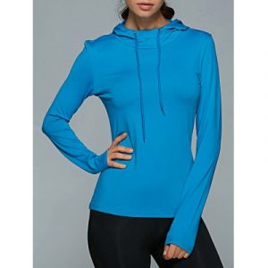 Яркий однотонный лонгслив с капюшоном на кулиске для зала